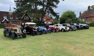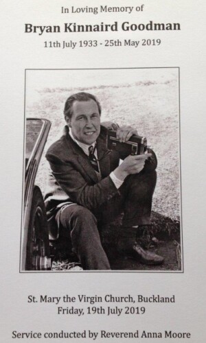 In 2009 I asked Bryan if he would be watching the Run but he replied that he wasn’t interested in watching that circus. Many people found Bryan difficult to get on with, and I can understand why, but he would always come over for a chat whenever he saw me at events or at Surrey Vintage Vehicle Society meetings. He was full of encouragement for new and young members. His funeral was for family and close friends only, but a few weeks later a memorial service was held at his local church. Unfortunately I was away so couldn’t make this but Ron Clark tells me the memorial service was very well attended and he estimates there were about 80 people present. On the green opposite the church a line-up of 8 old cars was headed by Michael Doughty’s 1910 Renault, as seen in the picture supplied by Ron. With the passing of both Bryan and Mary Goodman the VCC and old car world have lost a couple of very loyal supporters.